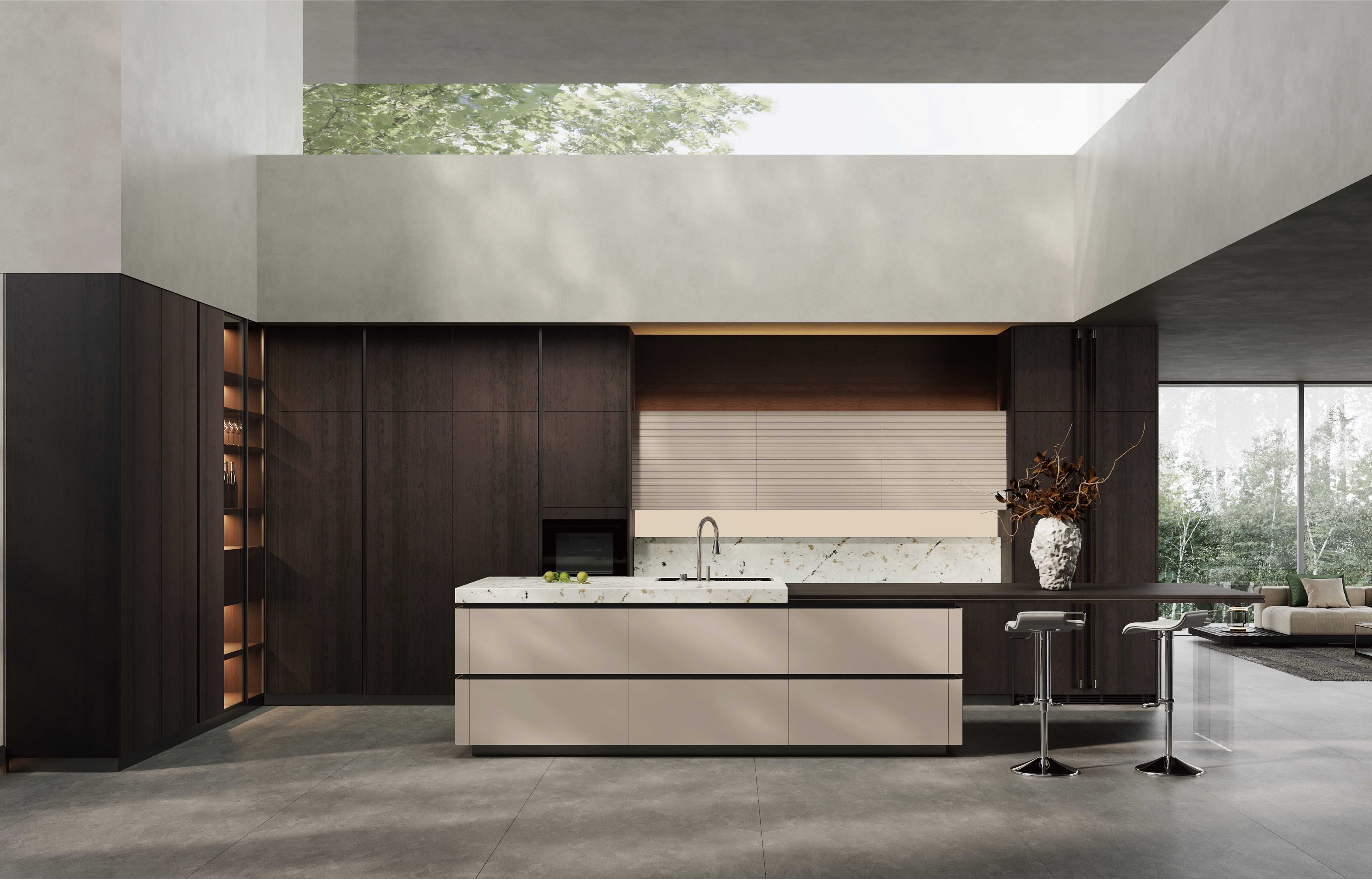 通过彩天下厨柜量体裁柜,定制出适合主厨下厨的烹饪区和洗涤区的舒适高度。